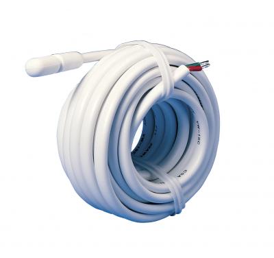 Датчик монтируется в гофрированной трубке. Окончание трубки герметизируется и располагается в полу между витками нагревательного кабеля, ближе к поверхности пола. При необходимости кабель датчика можно нарастить до 100м с помощью кабеля.