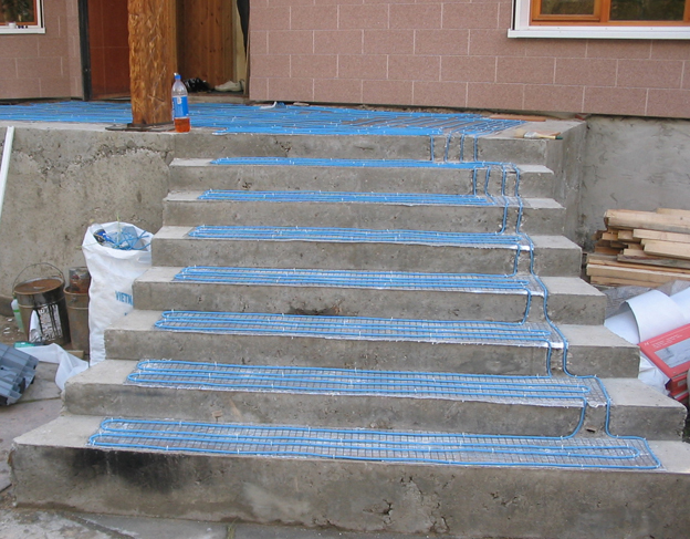 Одной из областей применения нагревательного кабеля является его использование в системах обогрева открытых площадок, пандусов, ступеней, подъездных дорожек и т.д.