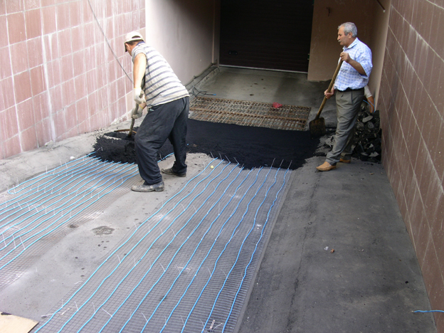 Принцип работысистем обогрева открытых площадок идентичен способу функционирования системы «теплый пол», однако, в конструкциях обогрева пандусов используется более мощный бронированный нагревательный кабель, что продиктовано не только возможными более сильными механическими повреждениями оборудования, но и присутствием более низких температур, по сравнению с обычным микроклиматом жилого помещения.